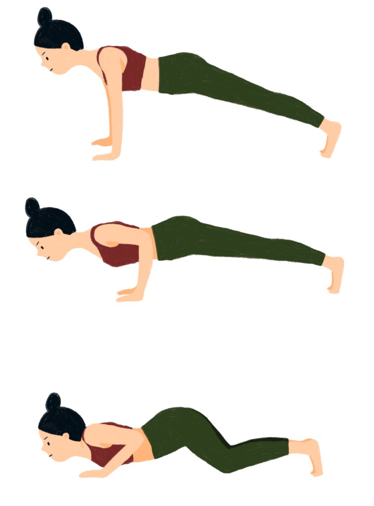 慣れたら、膝を床に下ろさずに挑戦してみよう。